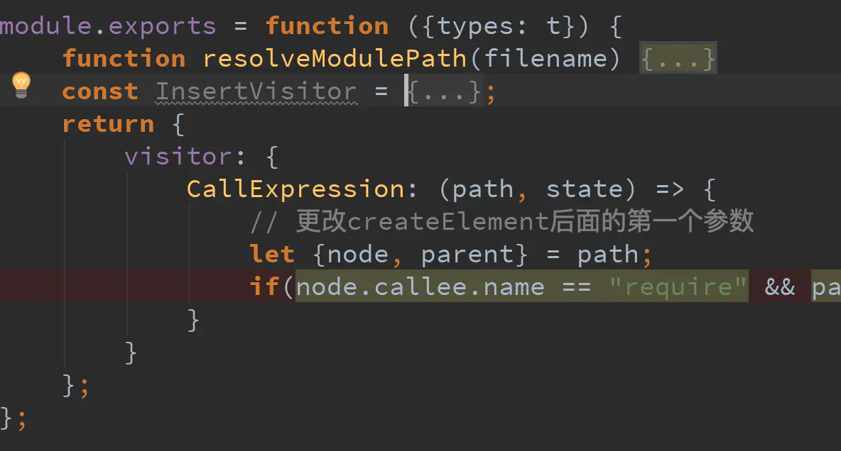 visitor字面意思就是访问者,这里也是这个意思,也就是我们要访问哪个类型的节点,这里是个CallExpression,字面意思就是调用表达式,类似于handle(),path参数表示当前节点的位置,包含的主要是当前节点(node)内容以及父节点(parent)内容,state先不管,有了这些我们就可以去修改代码了。