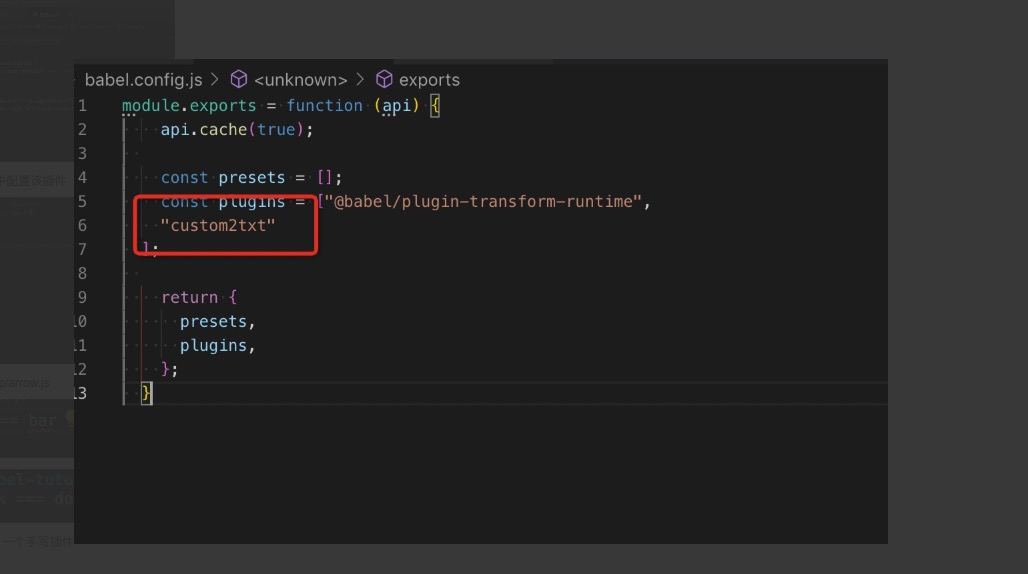 在nodel_modules下面建立babel-plugin-custom2txt文件夹index.js