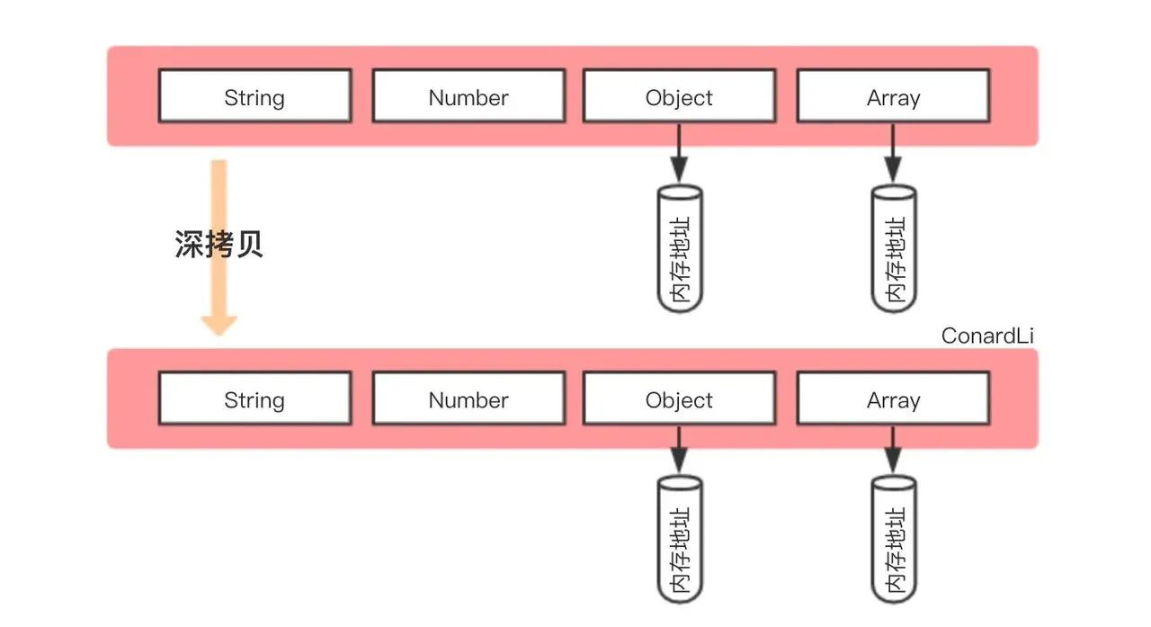 很容易理解,如果有更深层次的对象可以继续递归直到属性为原始类型,这样我们就完成了一个最简单的深拷贝