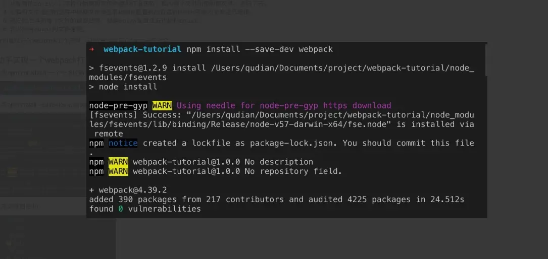 2.用npm install --save-dev webpack 本地安装webpack
