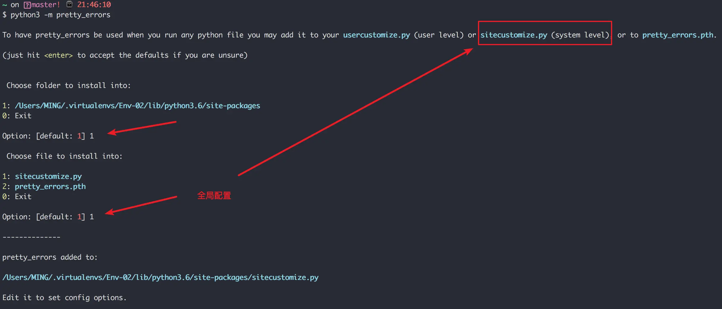 使用这一条命令,会让你进行配置,可以让你在该环境中运行其他脚本时的 traceback 输出都自动美化。