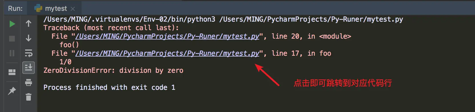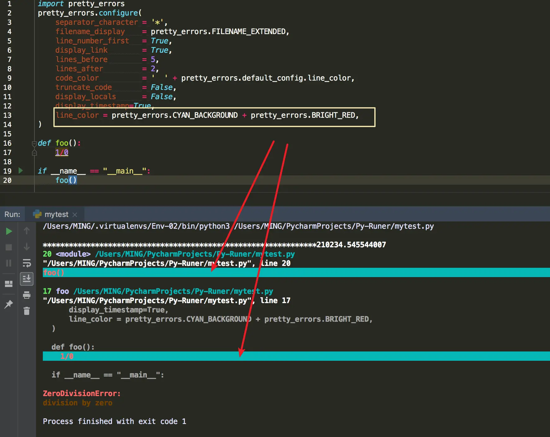 在你像上面这样使用 pretty_errrs.configure 进行配置时,抛出的的异常信息就变成这样了。