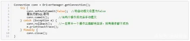 JDBC本身就提供了对数据库事务处理的支持,使用java.sql.Connection对象完成事务的提交。使用Connection提交数据库事务处理代码如下。
