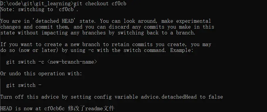 git checkout commit的hash // 分离头指针,可用做尝试性的提交,不与分支挂钩,在切换分支之后会被清除掉
