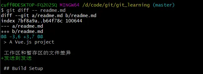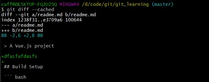比较 git add 后的暂存区与当前版本库最新版本的区别