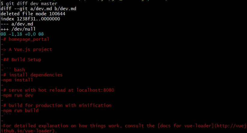 git diff 分支1 分支2 -- 文件名 // 比较不同的分支进行文件比较文件删除