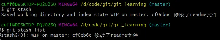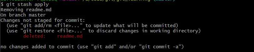 git stash apply // 将暂存的内容重新放回工作区,还有保留当前 stash list