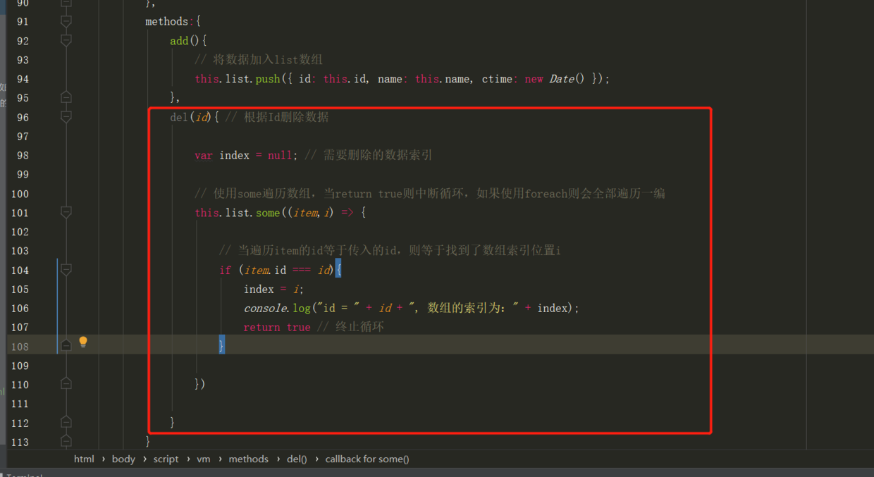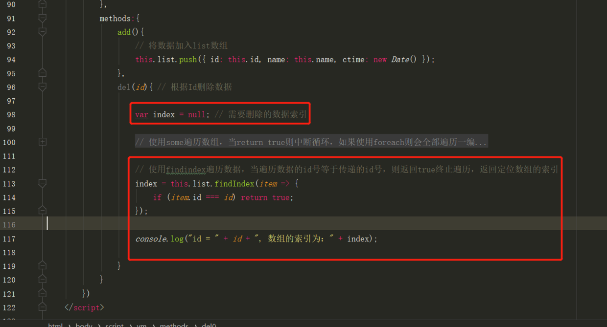 id,找到要删除这一项的数组索引index - 如果找到索引