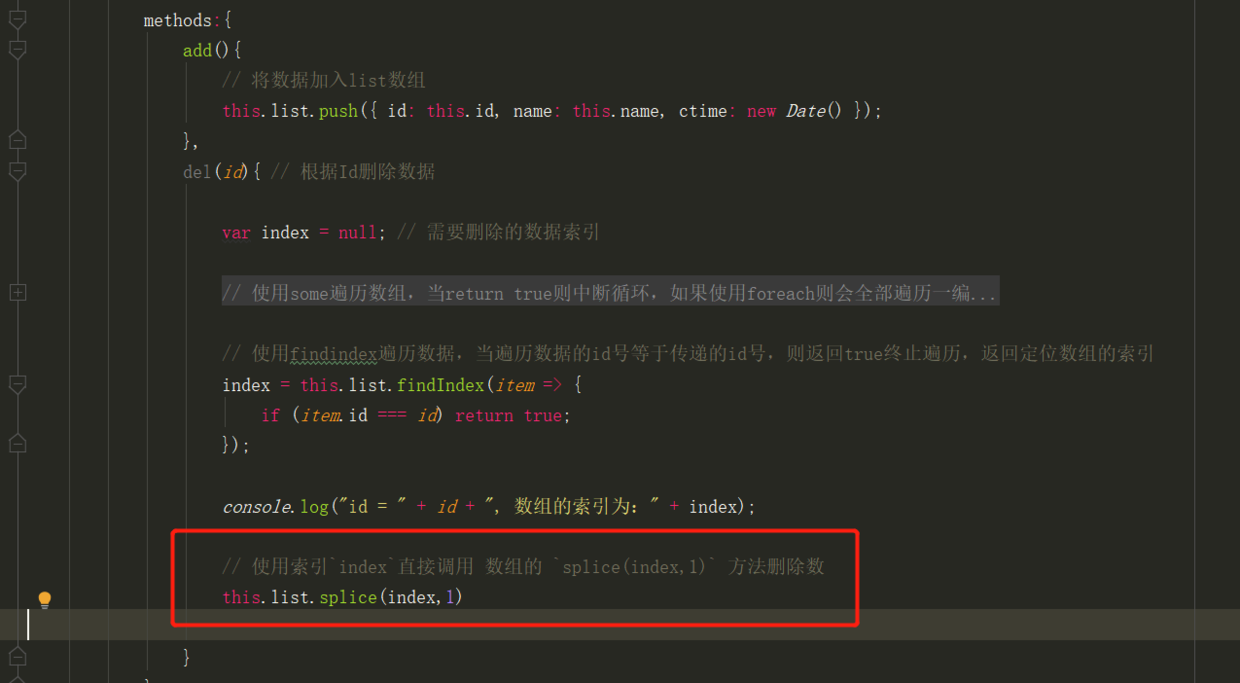 3. 使用索引index直接调用 数组的 splice(index,1) 方法删除数