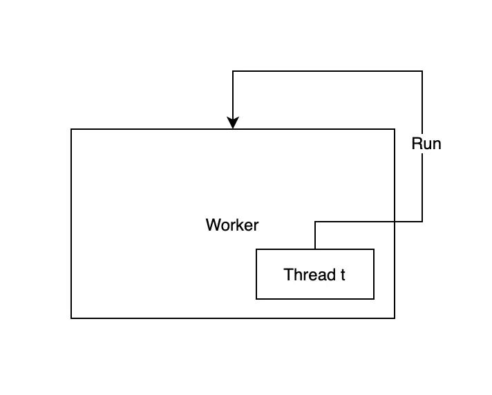 - worker 对象内部持有一个 Thread 类型的成员变量 t