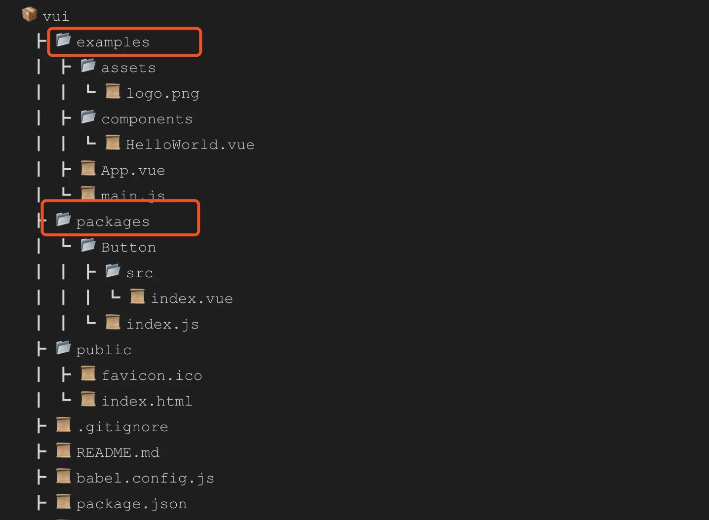 我们要想看到自己写的组件效果,可以将组件导入到examples目录下的main.js中,其本质就是一个项目的开发目录,我们只需要按照如下方式导入即可: