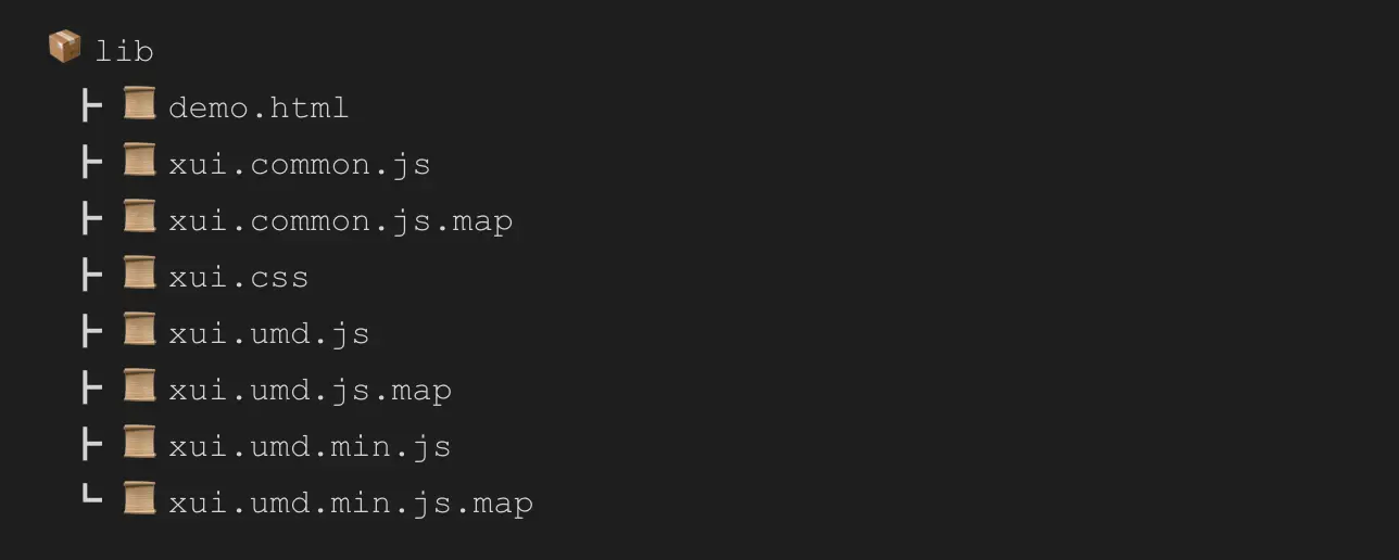 我们的lib脚本就是用来打包packages的组件代码到lib目录下,文件名为以--name指定的名称前缀开头,我们执行脚本会输出类似如下代码: