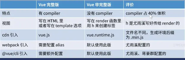 Vue完整版与运行时版的区别