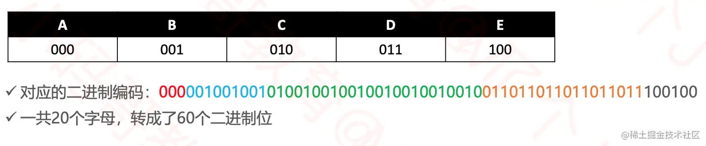"ABBBCCCCCCDDDDDDEE"转成二进制编码进行传输。- 可以转成