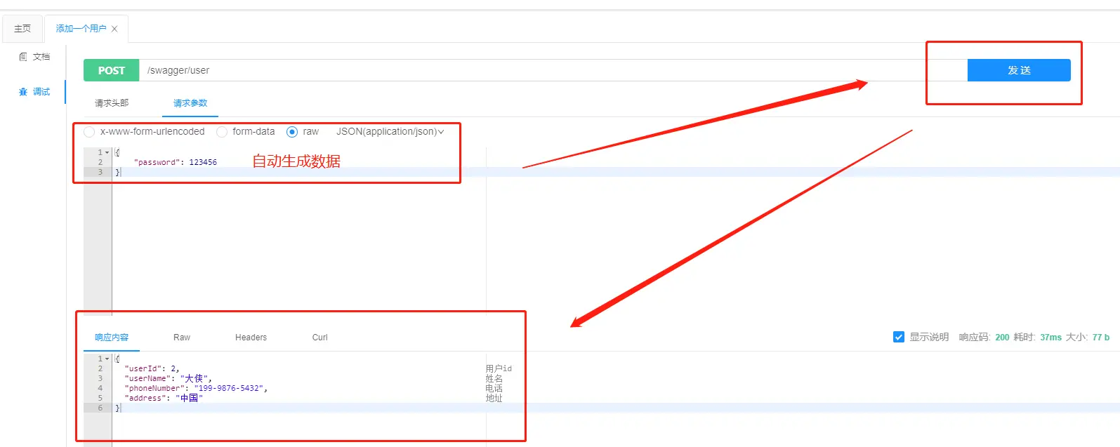 @ApiOperation(value = "添加一个用户",notes = "数据格式要对")
