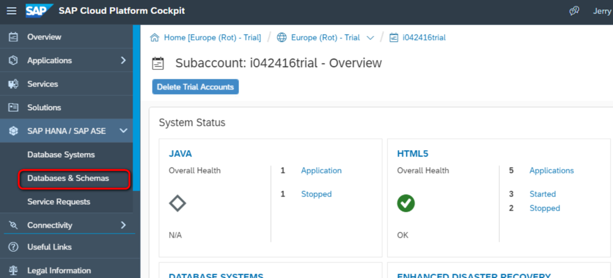 登录SAP Cloud Platform Neo环境,点击SAP HANA / SAP ASE菜单项下的databases & Schemas: