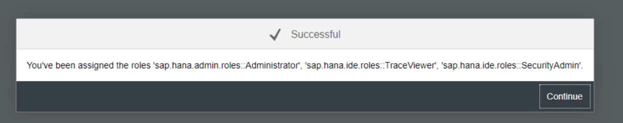 (1) sap.hana.admin.roles::Administrator (2) sap.hana.ide.roles::TraceViewer (3) sap.hana.ide.roles::SecurityAdmin