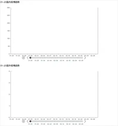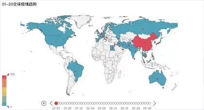 数据可视化,我们依旧选择之前讲解过很多次的pyecharts,主要使用的就是里面的Timeline:时间线轮播多图,简单来说就是在每一个时间点生成一张图然后滚动播放,有点像小时候的手绘小人书一样,所以我们的数据就需要是时间序列数据,那么具体关于怎样使用,参数如何调整请关注后续单独的可视化讲解文章,直接看代码与分析吧。首先是国内外疫情趋势