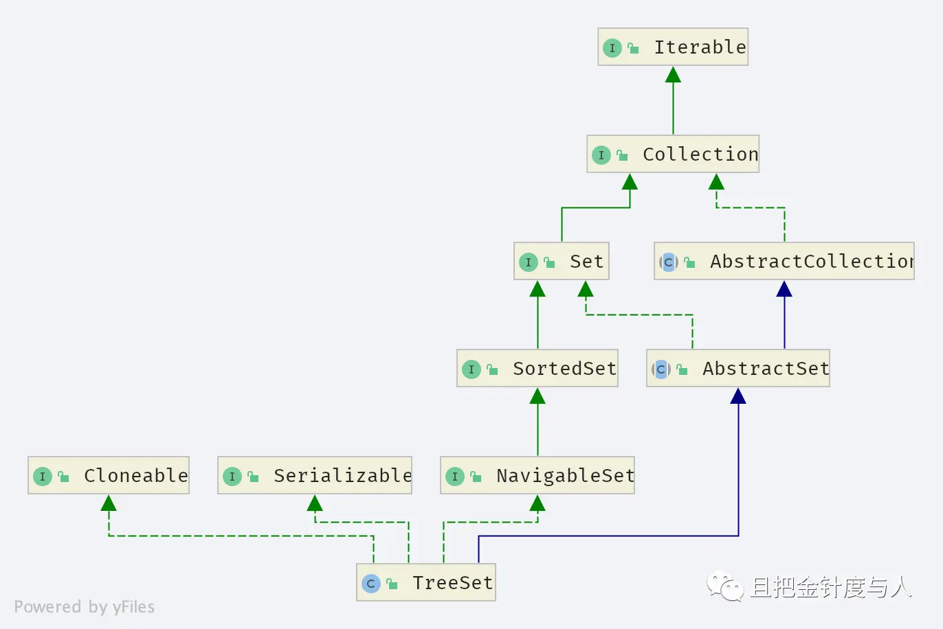 从类图上看,出现了两个之前没有见过的接口,即 SortedSet 和 NavigableSet 。让我们先来看看 SortedSet 的注释和源码。