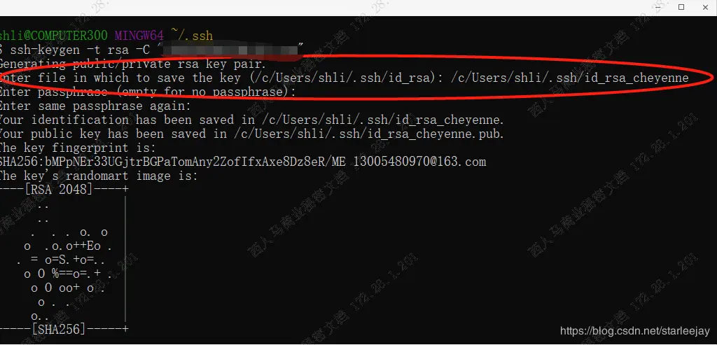 这里不要一路回车, 这里不要一路回车, 这里不要一路回车 会有一个提醒 去填写一个 key 的保存路径, 填写一个新的 id_rsa 的路径. 比如: id_rsa_userBBB ,图中我使用了 id_rsa_BBB 其他的一路回车就可以了。