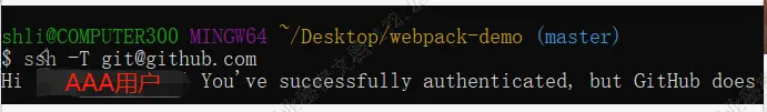 这时候虽然已经新建一把公钥连接了新的github 用户和本地,但是问题还没有解决,ssh 并不能区分两把钥匙,默认情况下他只使用 A 的钥匙,可以在BBB账户仓库的根目录做一下测试: