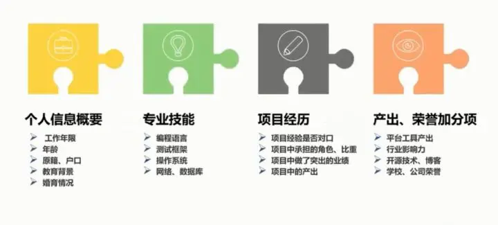 最后提醒一点,面试官是不会倒着看你的简历的,一定要把你最希望面试官问到的问题写在前面,展示出你最擅长的地方。比如你擅长测试框架,那你就写在前面,先让面试官问,建立良好的印象。