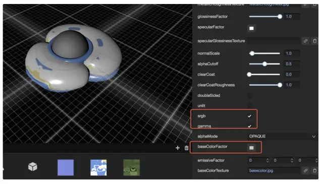 目前我们已经上传了 3 张贴图,分别绑定到 metallicRoughnessTexture、baseColorTexture 和 normalTexture.