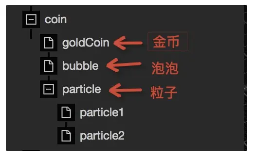 我们把上图窗口 2 中的节点展开,会看到一颗完整的场景树。在 root 节点下,主要包含了飞船、金币、粒子、灯光和相机。游戏的逻辑则通过脚本创建 ability, 比如在 root 节点下进行金币的克隆和创建速度线,关于脚本下文会展开描述。