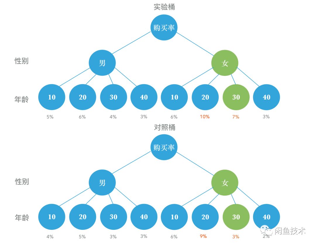 AB桶效果切面分析目的是找出受到活动印象最大和最小的切面组合。基于AB实验的人群切面数据差异对比,我们可以对正向影响人群做放大投放,对负向影响人群减少投放。
