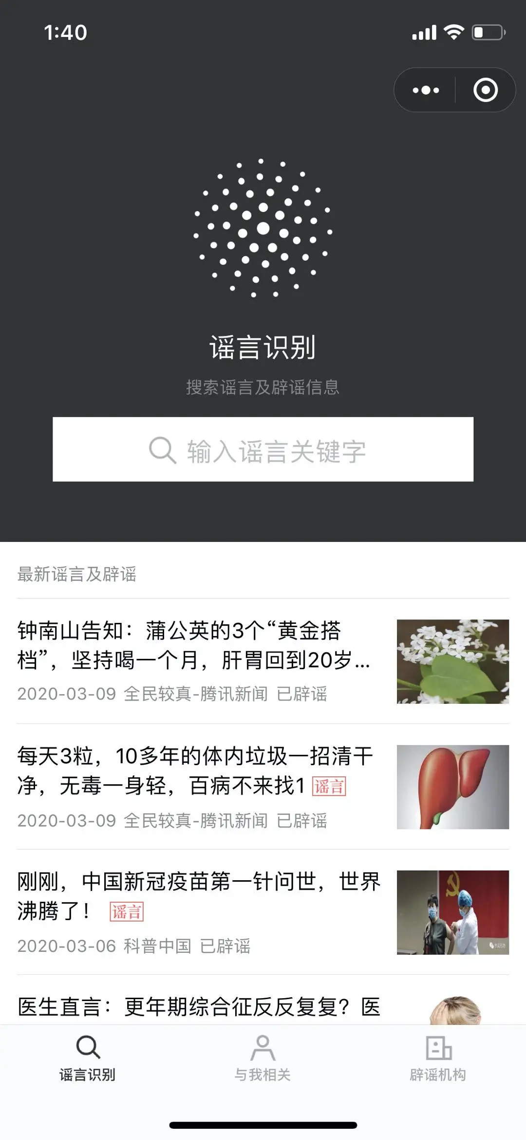 另外,微信官方的小程序中也有 「微信辟谣助手」 这样的实用小程序哦,给长辈们关注起来吧: