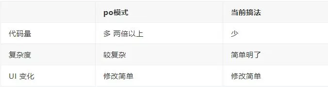 任何技术最终还要是服务于业务,是必须要能解决某些或某类问题的。这里以我对 PO 模式非常浅显的理解和我当前的做法做了个对比: