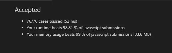 这个解法的代码也很简洁,但可能因为replace的原因,时间复杂度和空间复杂度效果都不是很好。