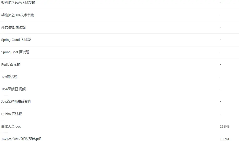 其实一步一步走过来,不单单只靠面试之前刷题那么简单,更多的还是平时的积累。小编整理出一篇Java进阶架构师之路的核心知识,同时也是面试时面试官必问的知识点,篇章也是包括了很多知识点,其中包括了有基础知识、Java集合、JVM、多线程并发、spring原理、微服务、Netty 与RPC 、Kafka、日记、设计模式、Java算法、数据库、Zookeeper、分布式缓存、数据结构等等资料获取方式:点赞后点击Java学习交流群免费领取!听说点赞的面试都轻松过!!!