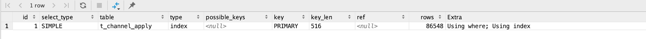 但我 explain select count(content_app_id) from t_channel_apply where content_app_id = 'xxx',发现这个语句竟然用到了索引,这个真是颠覆了我的认知