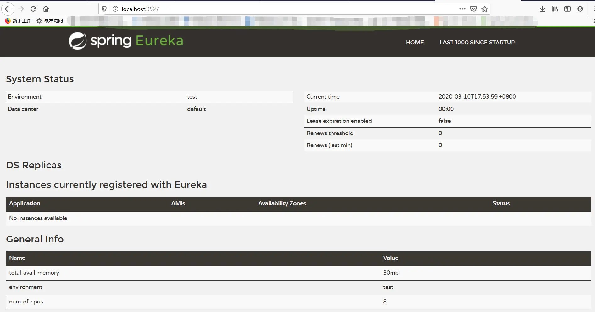 1.4 启动 服务中心 工程,打开浏览器,访问 服务中心 前台页面:http://localhost:9525
