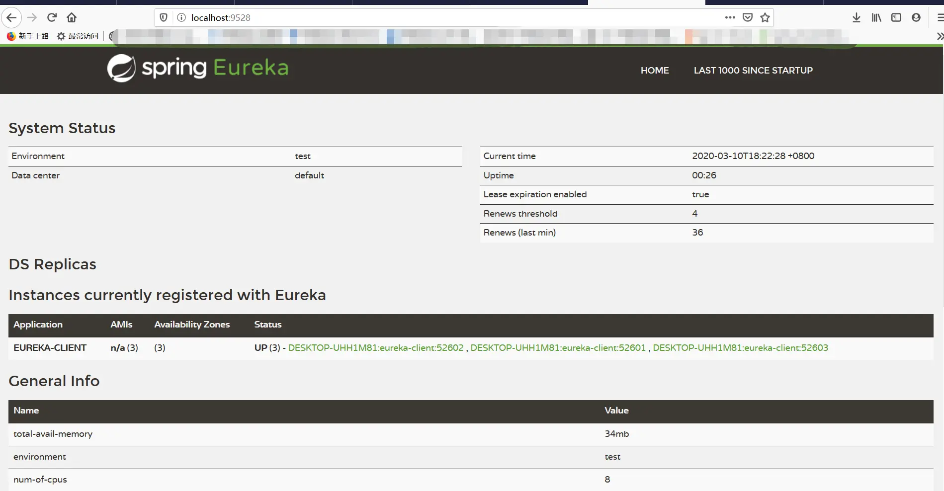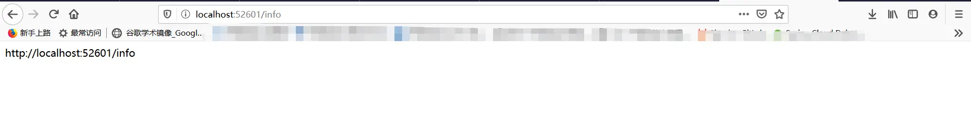 3.5 启动 Eureka Client 工程,打开浏览器,访问 Eureka Client 提供的 Restful 路径 http://localhost:52601/info