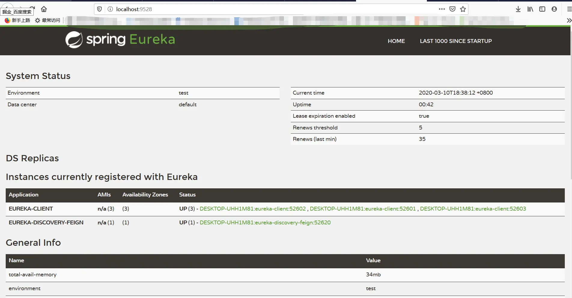 可以看到服务消费实例已经注册到了服务注册中心,服务名 EUREKA-DISCOVERY-FEIGN