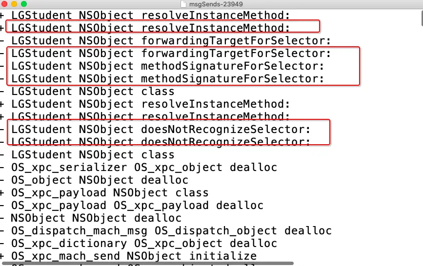 可以通过一下代码,将saySomething方法的消息转发到LGTeacher类中实现,而不会引起系统崩溃,至此消息快速转发结束。