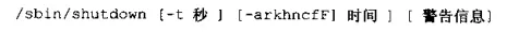 如:/sbin/shutdown -h 10 'this server will shutdown after 10 mins'它的参数有如下几个:(请务必加入时间参数,否则会自动跳到run-level 1,也就是担任维护的登入情况)