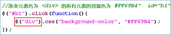 //获取id为div1的元素 document.getElementById("div1"); $("#div1") //获取class值为one的元素 $(".one") $("div")- 可以修改css属性控制页面效果