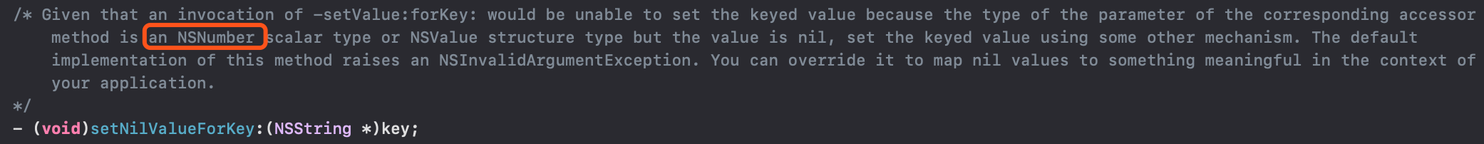 - (void)setNilValueForKey:(NSString *)key;