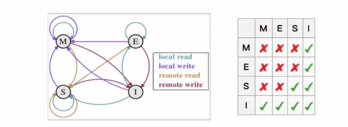I: 无效的(Invalid) 该缓存行是无效的,不包含任何内存地址对应的有效副本数据。该状态是缓存条目的初始状态。