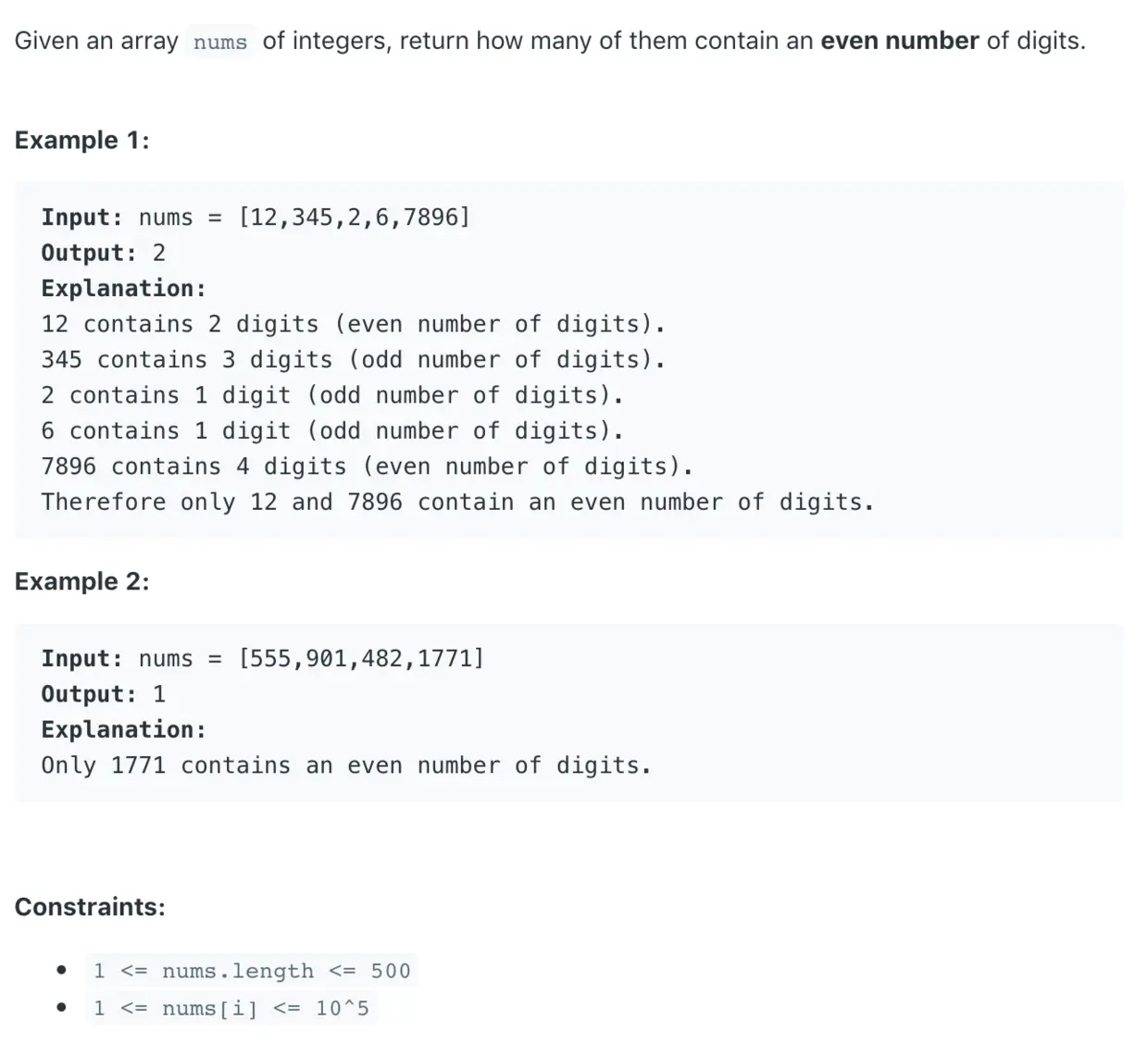 class FindNumbersWithEvenNumberOfDigits {