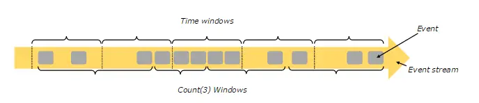 上图中,基于时间的窗口操作,在每个相同的时间间隔对Stream中的记录进行处理,通常各个时间间隔内的窗口操作处理的记录数不固定;而基于数据驱动的窗口操作,可以在Stream中选择固定数量的记录作为一个窗口,对该窗口中的记录进行处理。