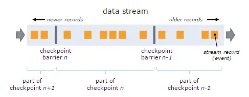 - 出现一个Barrier,在该Barrier之前出现的记录都属于该Barrier对应的Snapshot,在该Barrier之后出现的记录属于下一个Snapshot