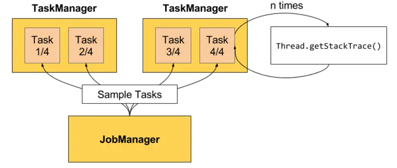Flink Web界面上提供了对运行Job的Backpressure行为的监控,它通过使用Sampling线程对正在运行的Task进行堆栈跟踪采样来实现,具体实现方式如下图所示: