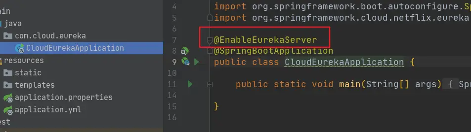 application.yml,内容如下:server: port: 8761 spring: application: name: eureka-server eureka: client: registerWithEureka: false fetchRegistry: false serviceUrl: defaultZone: http://127.0.0.1:${server.port}/eureka/ -