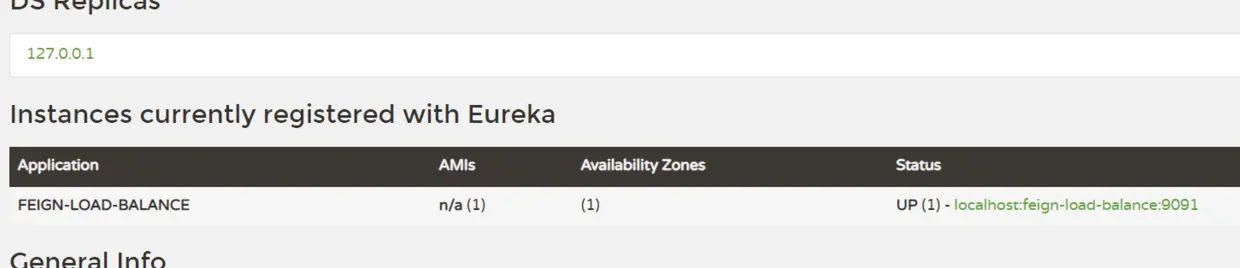 - 启动feign-load-balance项目,访问eureka注册中心,可以看到服务注册成功,Feign服务即创建启动完成。