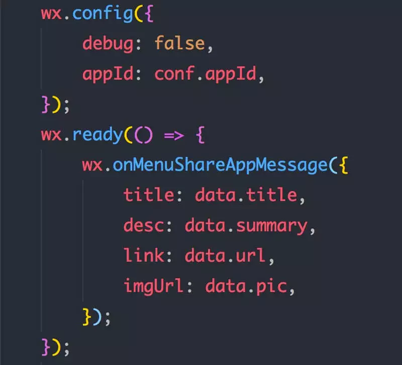 以上的三种方案,其实同样都是基于 JSBridge 完成的通讯层,第二三种方案,其实可以看做是在方案一的基础上,继续通过不同的新技术进一步提高了应用的混合程度。因此,JSBridge 也是整个混合应用最关键的部分,例如我们在设置微信分享时用到的 JS-SDK,wx对象 便是我们最常见的 JSBridge: