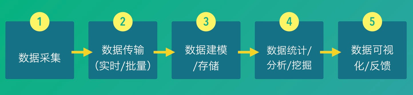 随着大数据时代的到来,越来越多公司注意到数据带来的价值,开始自建或购买一些第三方的数据平台。从数据流的角度看,平台对于数据的处理,一般有以下几个步骤: